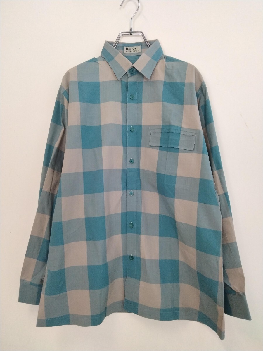 - ● ヴィンテージ RAIKA ◆ チェック 長袖シャツ (ブルー/ベージュ Lサイズ) レギュラーカラー オールド レトロ ライカ ◆W12 ごL9Rう-19