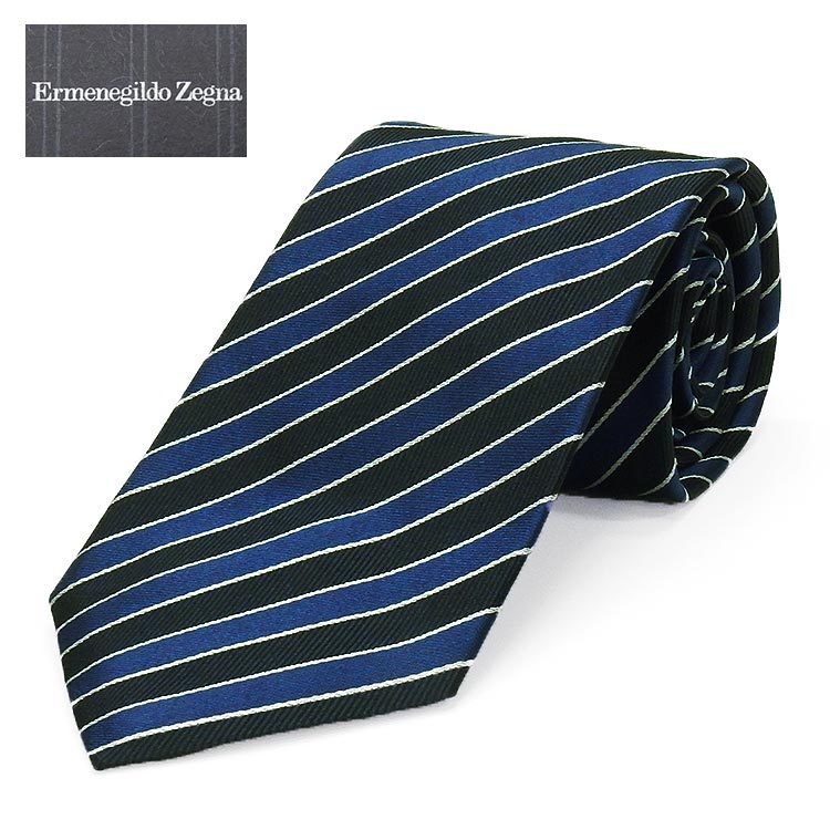 > ◇Ermenegildo Zegna◇イタリア製ネクタイ◇黒×紺×白銀◇ストライプ◇シルク 100%◇ゼニア ネクタイ ブランド EZN01