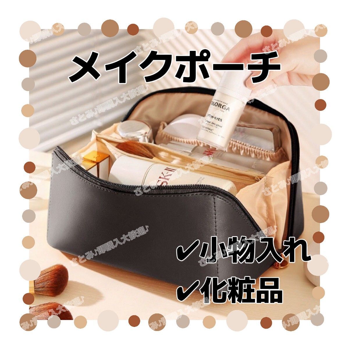 - 大容量 メイク ポーチ 化粧ポーチ 小物入れ レザー 可愛い シンプル ブラック