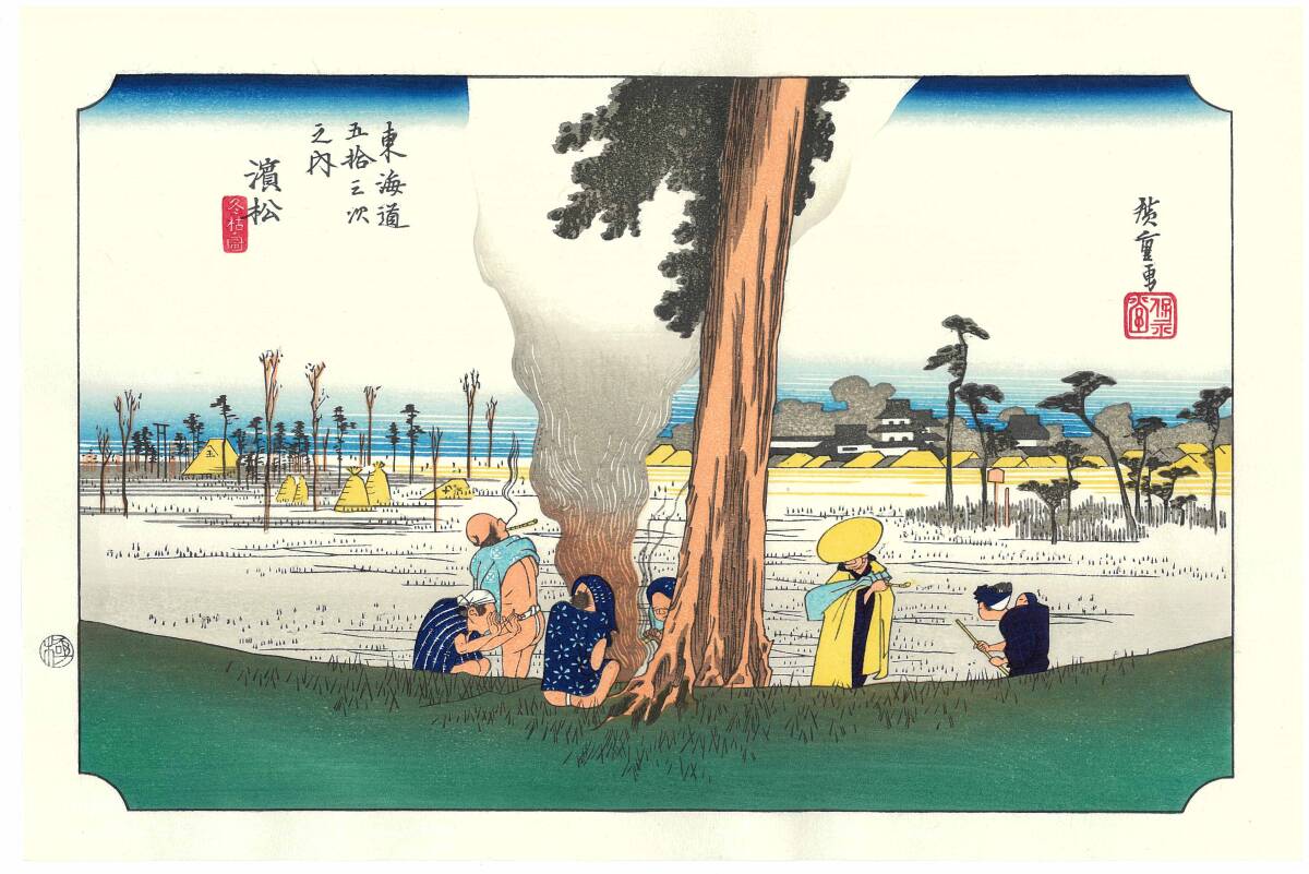 - 真作保証 東京都伝統工芸品 歌川広重 木版画 東海道五十三次 #30 濱松 冬枯ノ図 これぞ広重の浮世絵界での出世作!