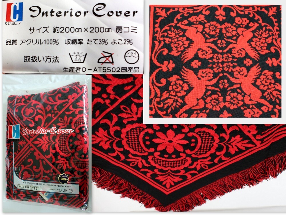 > 1048/未使用品・長期保管品/インテリアカバー200cm×200cm アクリル100% 赤・黒・天使 ★マルチカバー.こたつカバー.昭和レトロ