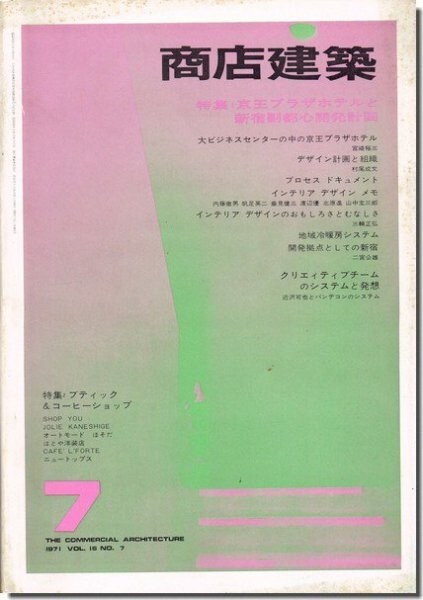 - 12]商店建築1971年7月号|特集1 京王プラザホテルと新宿副都心開発計画/特集2 ブティック&コーヒーショップ: 葉祥栄ほか