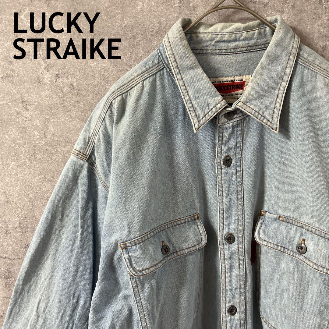 - LUCKY STRAIKE デニムシャツ 長袖ライトブルーXLメンズ B1