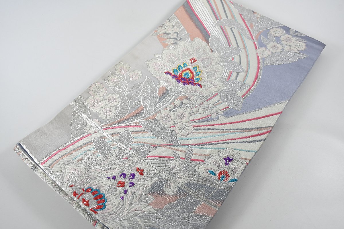 - 袋帯 六通柄 唐花文様 花 帯丈428cm ★着物屋 ne-13205 桜庭呉服店