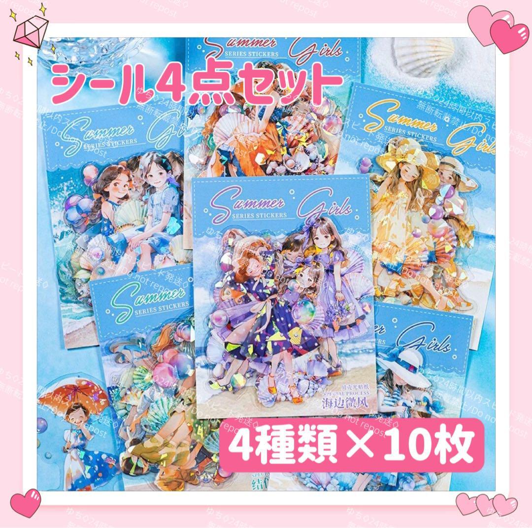 - シール ステッカー 40枚 4種10枚 PET 光 防水 デコ コラージュ アレンジ 素材 コレクション 可愛い 女の子 ④