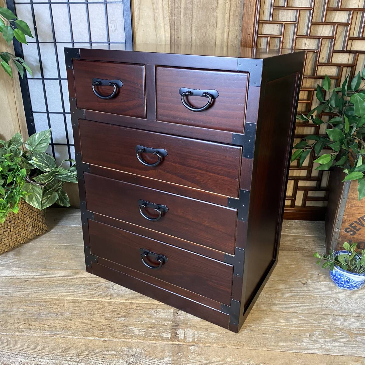 - 送料無料、民芸家具和チェストタンス四段五つ引き(50㎝×65㎝)木製収納箪笥、桐材無垢、小物収納、木製桐箪笥、和室、チェスト、飾台、和室