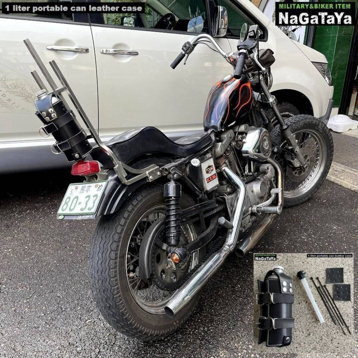 - 本革 レザー ガソリン 1L 携行缶 ジェリ缶 燃料 ボトル ホルダー ブラック 黒 Black アルミ ガソリン用携行缶付