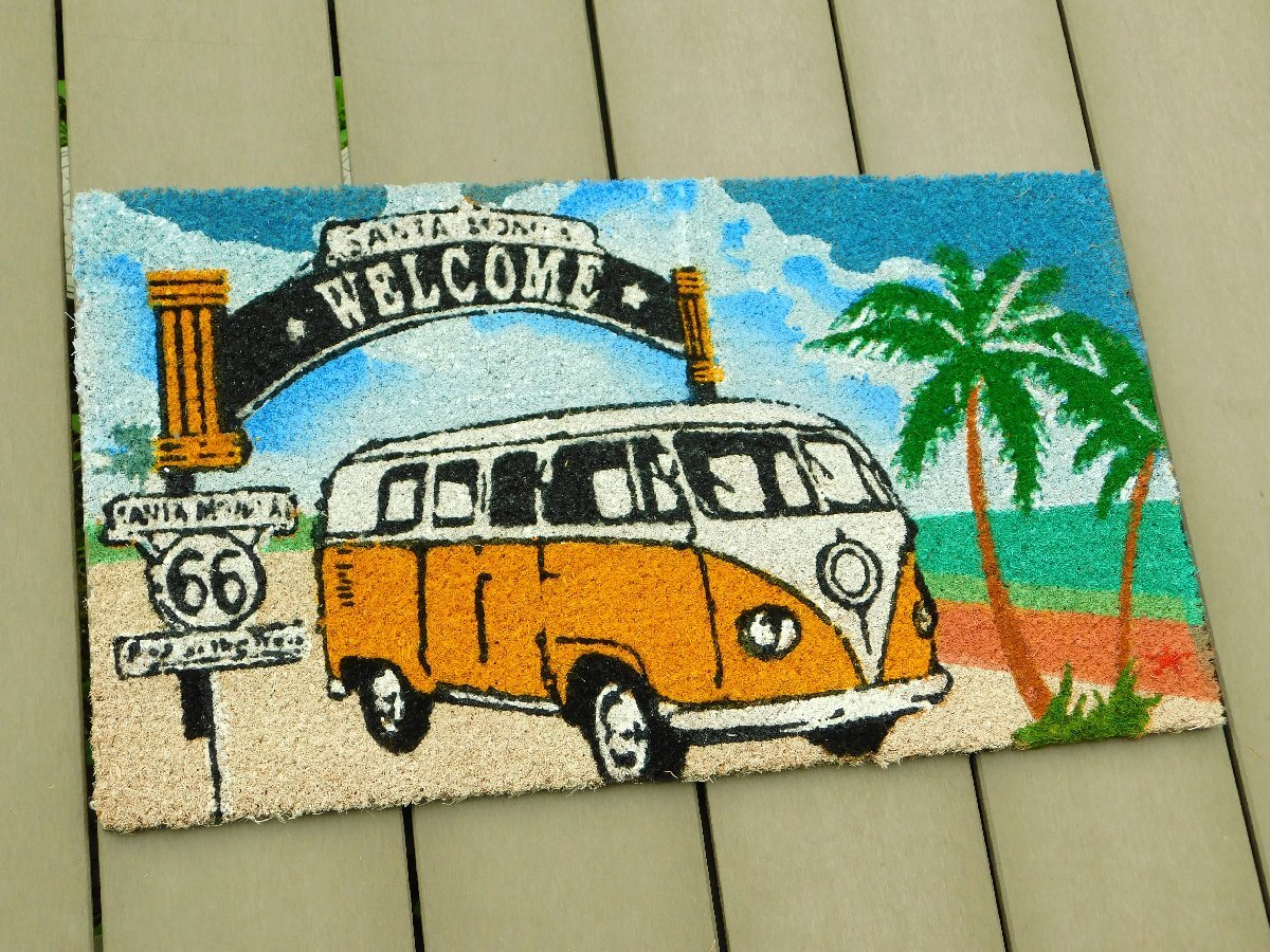 - 【アメリカン コイヤーマット】※《WELCOME SANTA MONICA・オレンジバス》 アメリカン雑貨 ガレージ 玄関マット