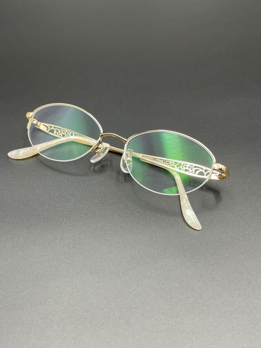 > 極美品 JINS Relief Metal LMN-18A-242 ジンズ ハーフリム ゴールド 眼鏡 良品