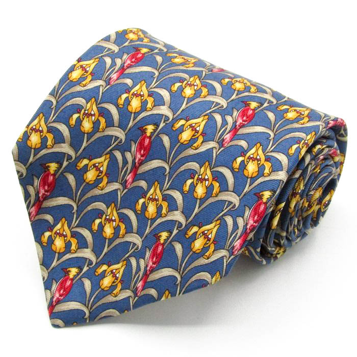 > ニナリッチ ブランド ネクタイ 総柄 花柄 リーフ柄 シルク フランス製 PO メンズ ネイビー NINA RICCI