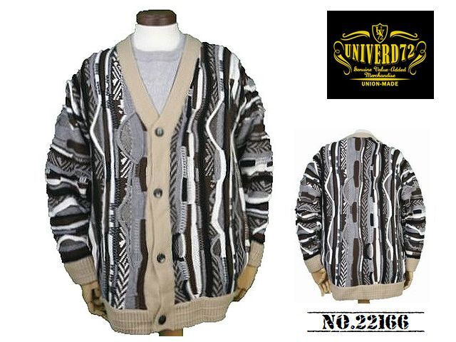 > 【送料無料 41%OFF】UNIVERD72 ユニバード72 3D ジャガード カーディガン NO.22166 (02) GRAY系_Lサイズ