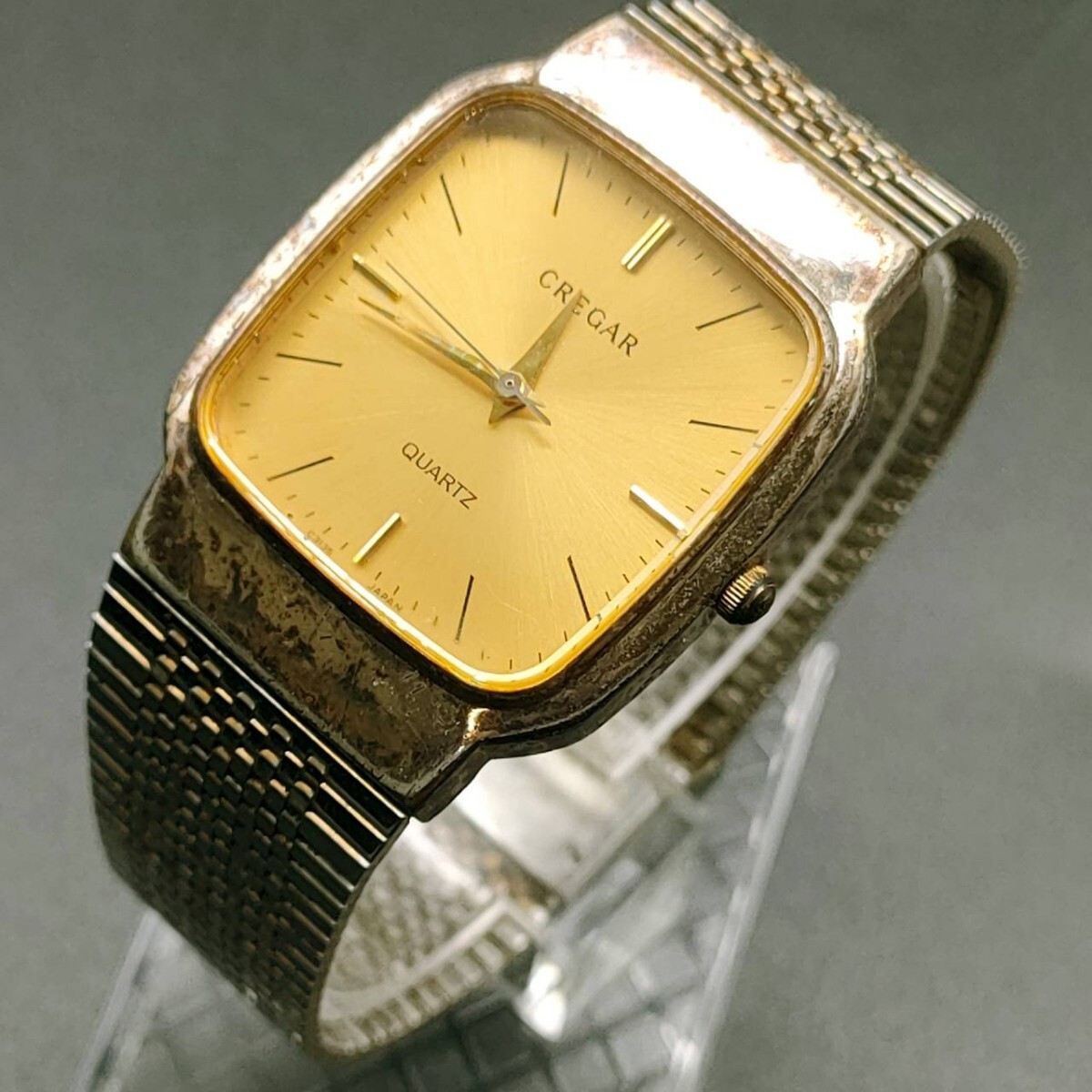 > T13 【レア】 CREGAR グレガー 腕時計 C3135 クウォーツ 3針 金色文字盤 デイト アナログ ヴィンテージ アクセサリー シルバー