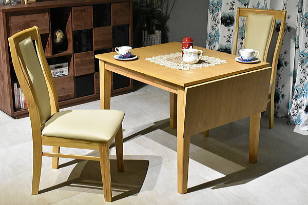 天然木オーク材片バタ伸長式ダイニング3点セット