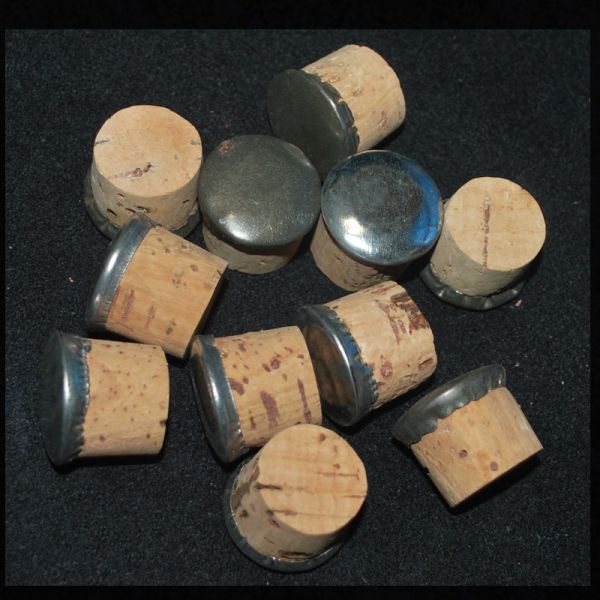 - ●1983●希少な未使用置き古し品 ◆ 古いアルマイト水筒の金具付コルク栓 小型10 個 ◆ サイズが合えば水筒以外にも!