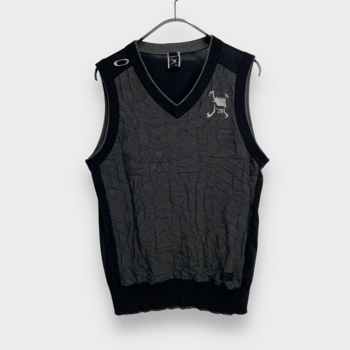 - 送料無料☆OAKLEY☆オークリー☆ニットベスト☆Vネック☆スカルマーク☆メンズM☆黒☆グレー☆K24M