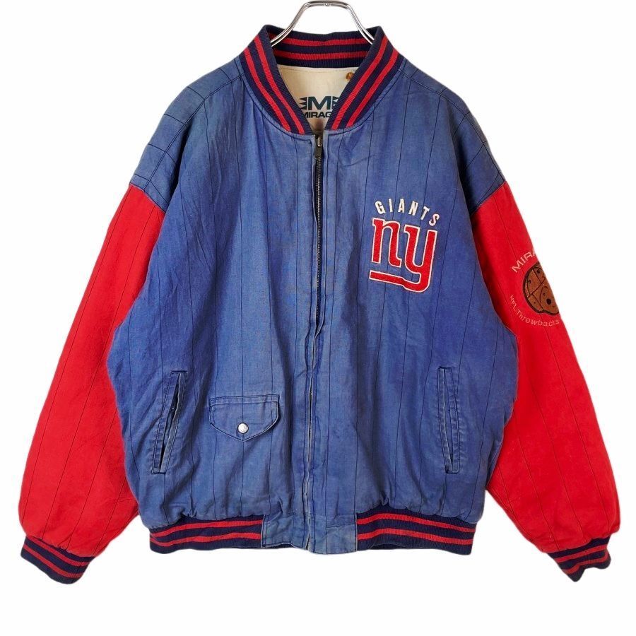 - リバーシブル!2Way!Mirage NFLニューヨーク・ジャイアンツNew York Giantsラミーコットンスタジャンブルゾン刺繍ワッペンアメフト40813