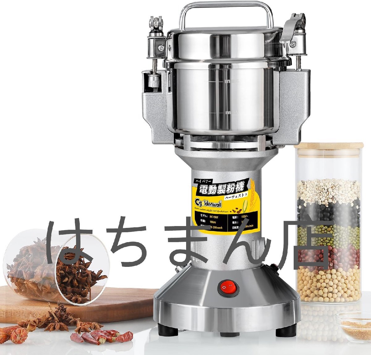 - 150g粉末ミル 電動粉砕機 家庭用 穀物ミル 1分間に微粉末・ハイパワー お米/山椒/胡椒/お茶/小麦粉/こーひまめ・乾燥材料のみ 換え刃あり