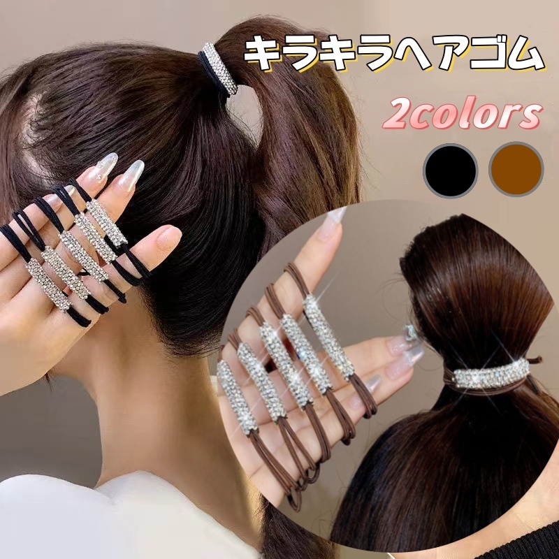 - 【お得な2色10本セット】新品送料無料!ラインストーンヘアゴム 可愛い 韓国 キラキラ ヘアアクセサリー レディース 髪ゴム 春 夏 秋 冬