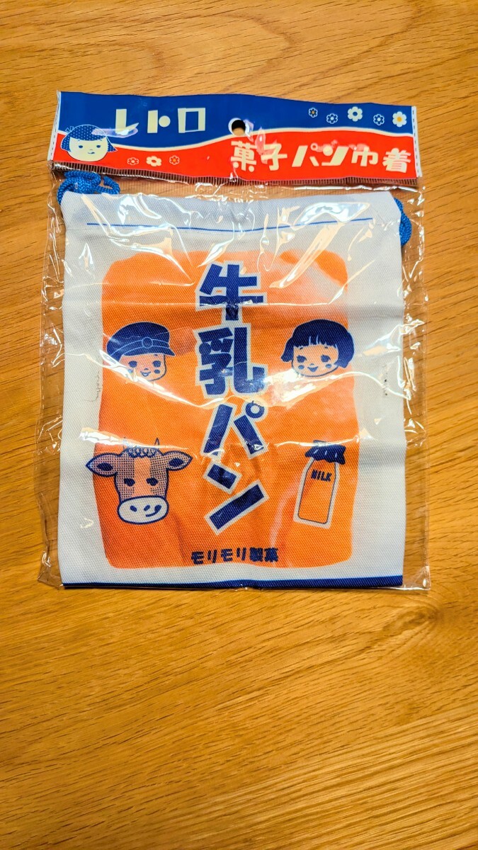 - 【新品未開封】レトロ菓子パン巾着袋 牛乳パン モリモリ製菓 菓子パン巾着 昭和レトロ 小物 なつかし 非売品