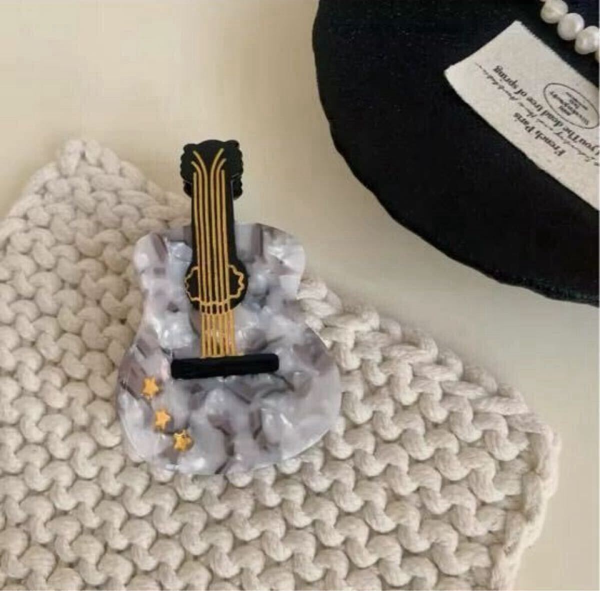 - ギター 楽器 音楽 ヘアクリップ バンスクリップ ヘアアクセサリー バレッタ マーブル グレー系