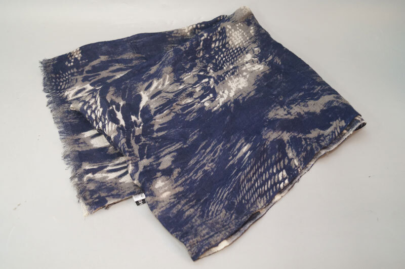 > yf09-5351 Pour Les Hommes プールオム ストール ネイビー系 全長88㎝ 毛 100% 装飾小物 防寒 マフラー 巻物 インド製