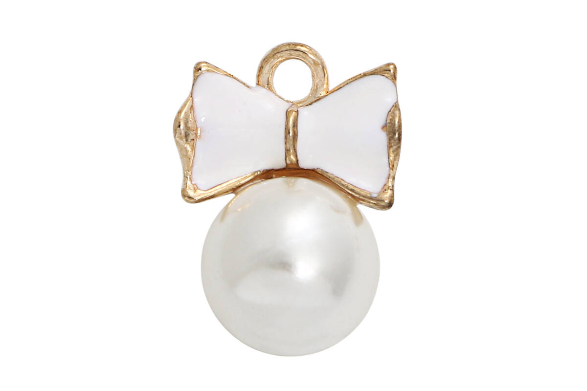 - 【4個・白】リボン パール カン付き 金色 チャーム ゴールド アクセサリー製作 デコパーツ DIY ハンドメイド素材 資材 夢かわいい