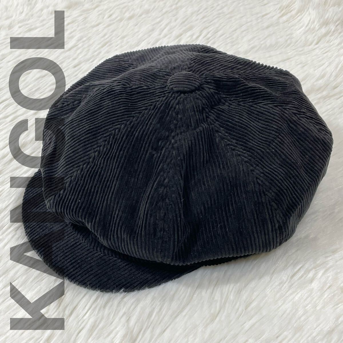 - KANGOL カンゴール ロゴ 刺繍 コーデュロイ キャスケット 帽子 ブラック CP024