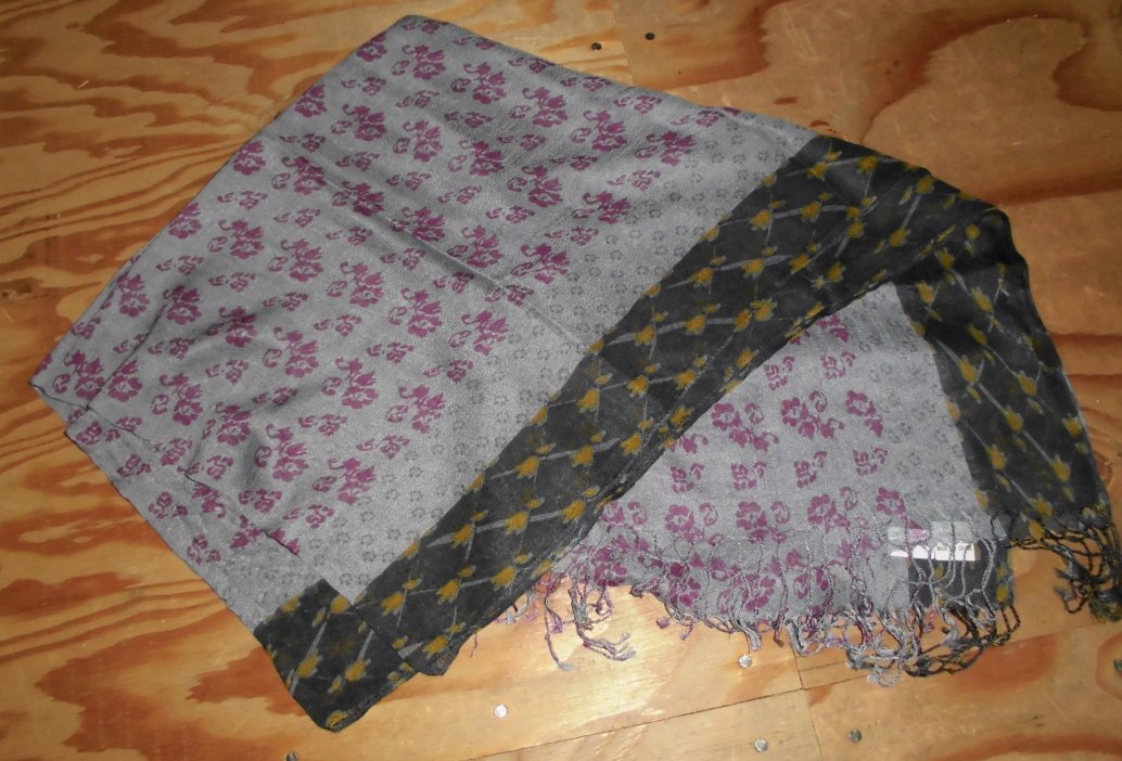 - ボタニカル柄☆レーヨンストール カラー切替 グレイ系 でかめサイズ