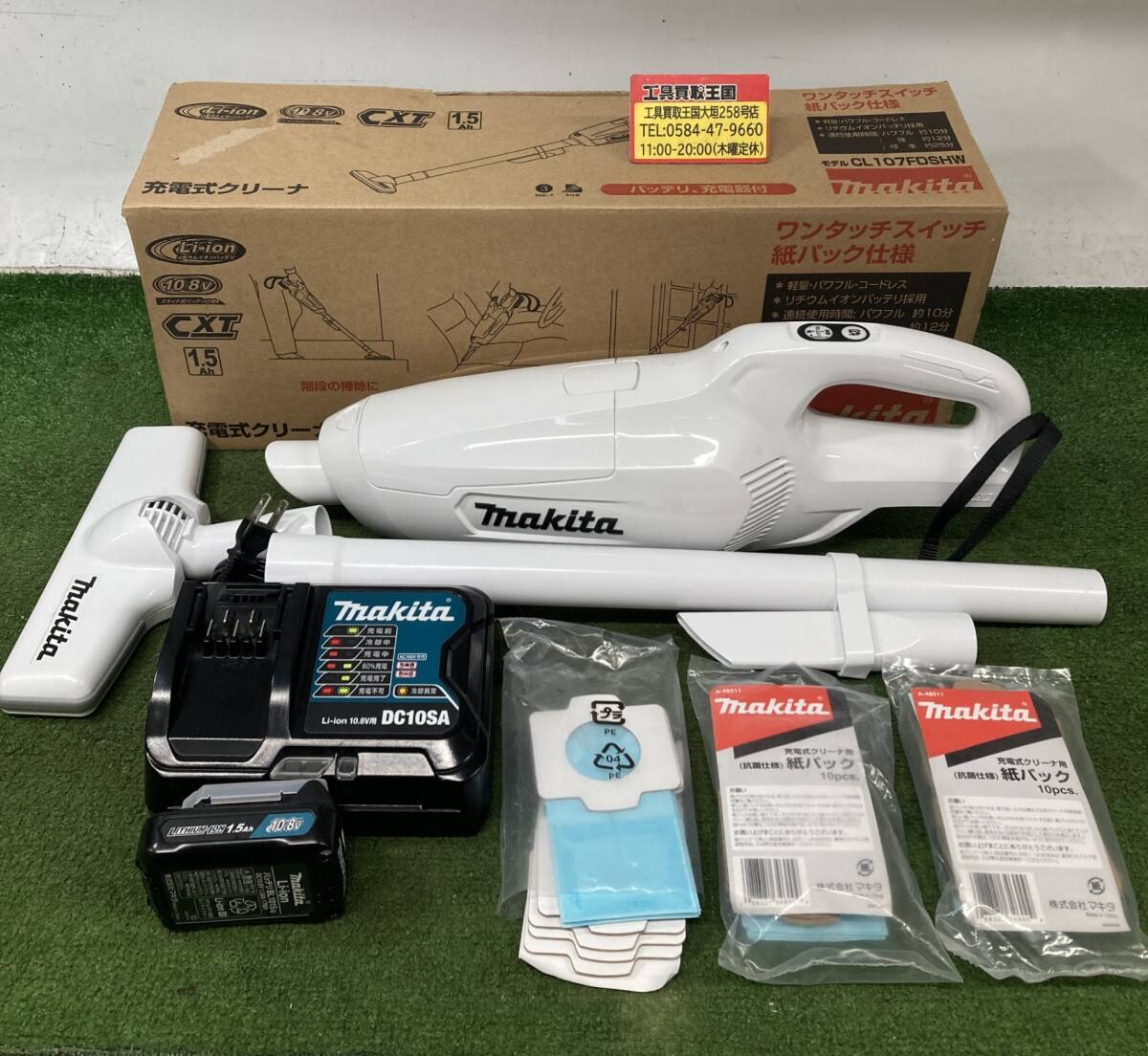 - 【中古品】★makita(マキタ) 10.8v充電式クリーナ (1.5Ahバッテリx1/充電器) CL107FDSHW ITR2X7GC066P