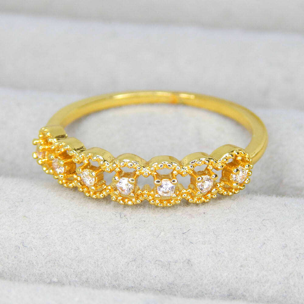 - 残り1点★新品★送料無料 ジルコニア オススメ 9号 7連CZダイヤモンドリング 細身 Gold Plated 指輪 限定 美品 レディースアクセサリー