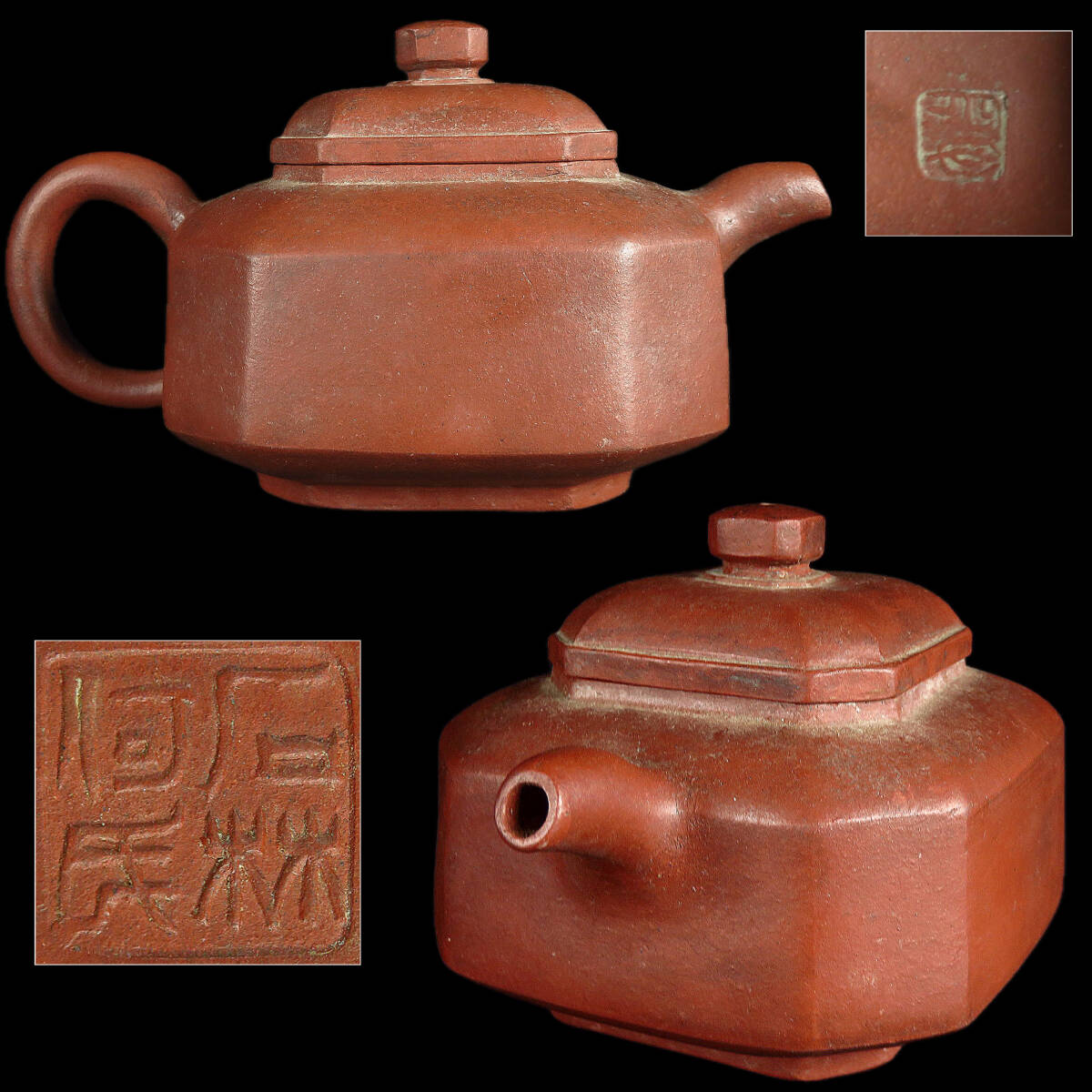 > 【SAKURAYA】中国古玩【唐物 朱泥 中国の古い急須 石林何氏 正西款】茶道具 煎茶道具 茶器 中国美術 骨董品 古美術品 全長17.5cm