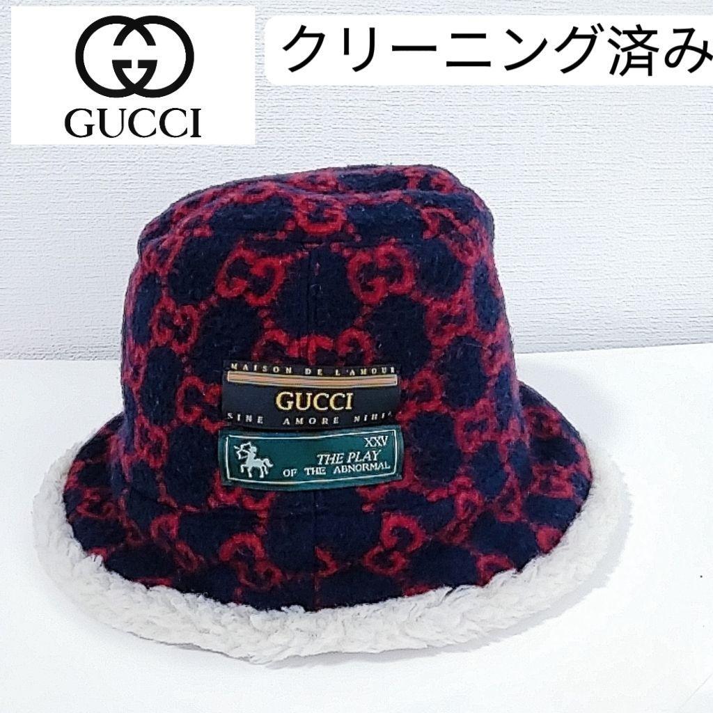 - 超美品 グッチ GG スブリーム ボア バケットハット 604194