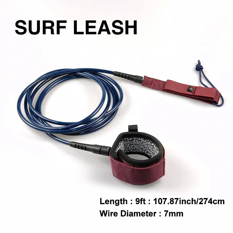 > サーフボードリーシュコード ロング用 9ft/7mm サーフィン ネイビー紺/ワイン紫 足首用 アンクル パワーコード サップ ノーブランド
