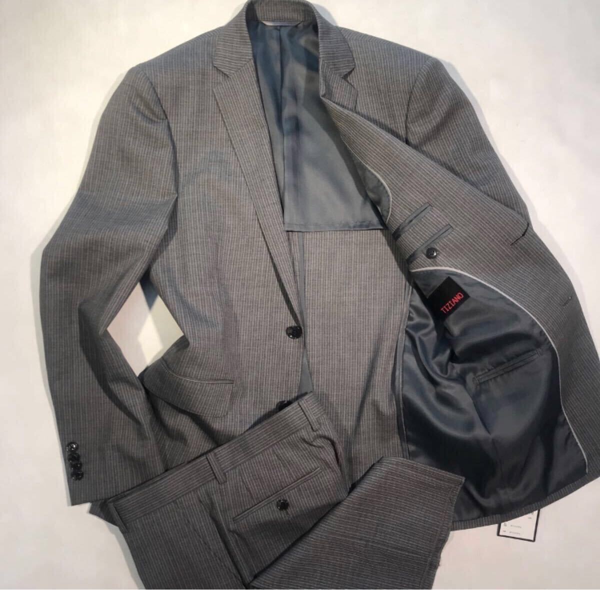 - 【訳あり未使用品】紳士服 背広 ストライプスーツ/細身サイズL Y6/グレイ系/センターベンツ ノータック*穴あき有