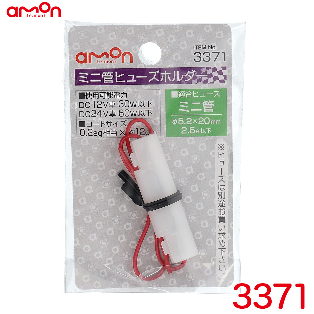 - ミニ管ヒューズホルダー ミニ管ヒューズ用(φ5.2×20mm 2.5A以下) コードサイズ0.2sq相当×約12cm エーモン/amon 3371