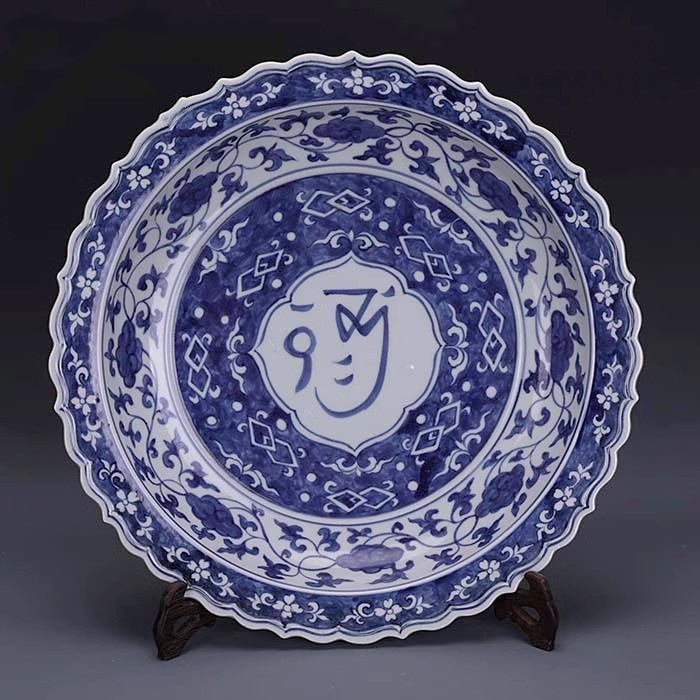 - ◆旧家蔵出◆古美術 中国古玩大明正徳年製款 青花 纏枝蓮花 八八思紋大盤 古賞物 擺件 骨董 時代物 CN01