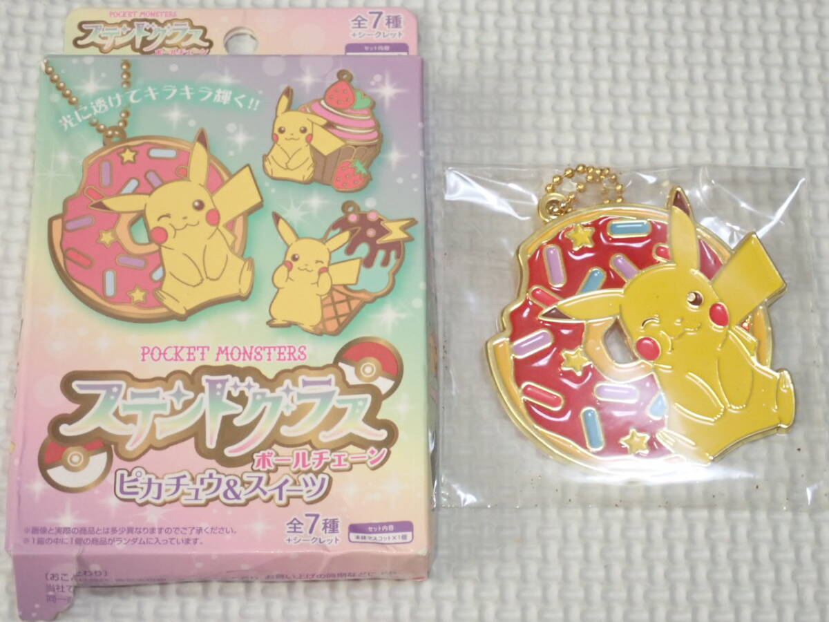 - ポケットモンスター ステンドグラス ボールチェーン ピカチュウ&スイーツ ドーナッツ★新品未開封