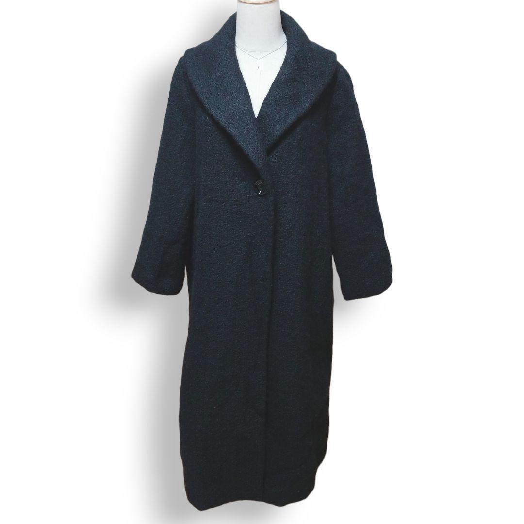 > Y1723 アフターオール after all 高級ウール使用 ショールカラー ツイード ロングコート レディース 2 L相当 ブラック 黒 日本製