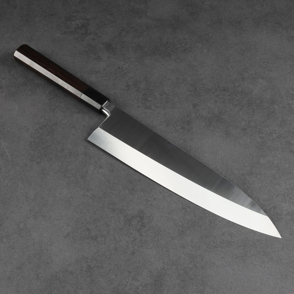 - 6770 豪壮で迫力 巨大な出刃包丁 9寸 希少 刺身包丁 和包丁 本出刃 黒檀黒水牛角八角柄