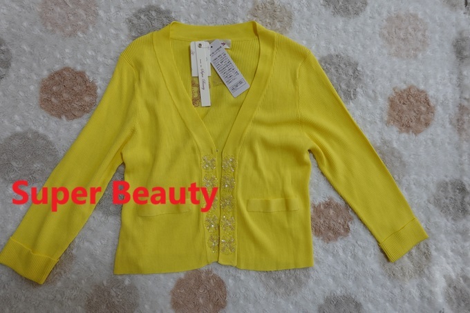 - 新品☆タグ付き Super Beauty ビジュー カーディガン 七分袖 42 L スーパービューティ
