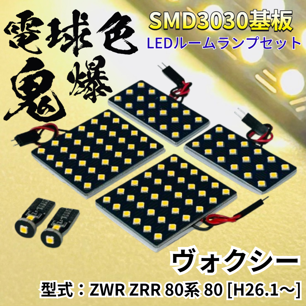 - 【電球色】ヴォクシー ZRR 80系 80 VOXY 適合 鬼爆基板 3030SMD LED ルームランプ セット 車内灯 室内灯 パーツ アクセサリ 読書灯