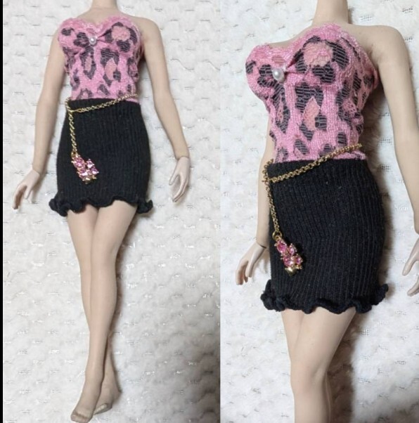 - 1/6ドール用 TBLeague ファイセンS07 クールガール ヒョウ柄切替ドレス チェーンベルト
