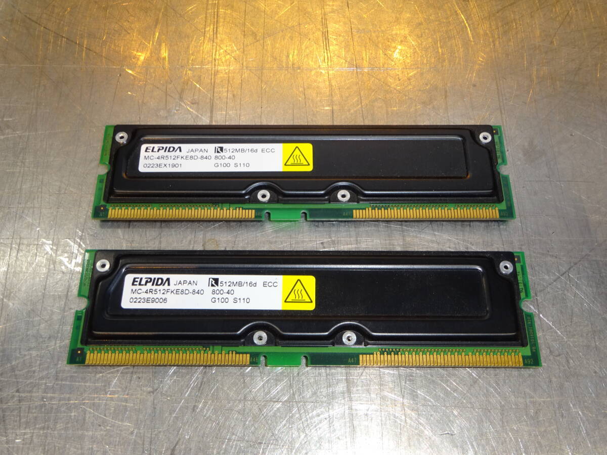 - ELPIDA エルピーダ MC-4R512FKE8D-840 PC800-40 512MB RDRAM RIMM 廃盤品 絶版 希少 パソコン PC RAM メモリ
