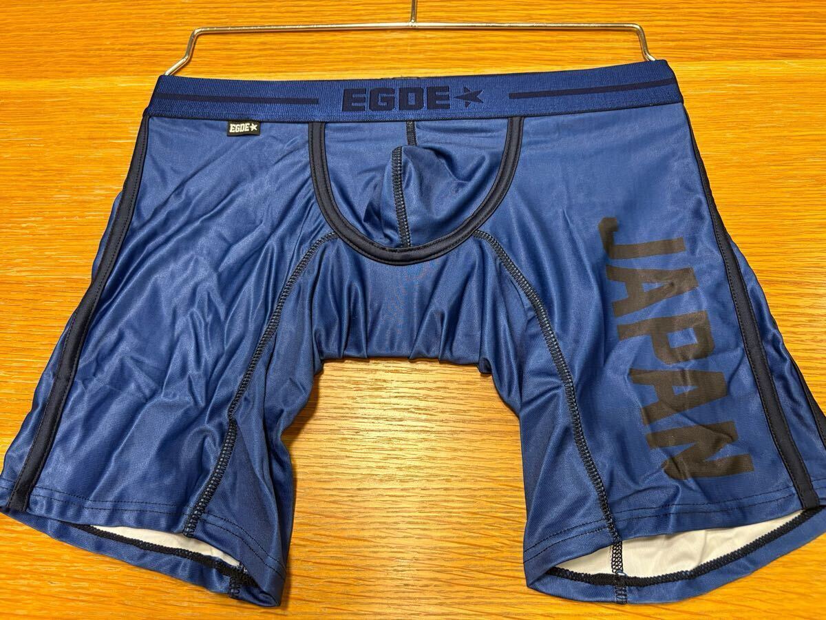 > EGDE ボクサーパンツ ロングボクサー ネイビー Mサイズ JAPAN ロングスパッツ 強光沢感 ツルツル生地 ローライズ