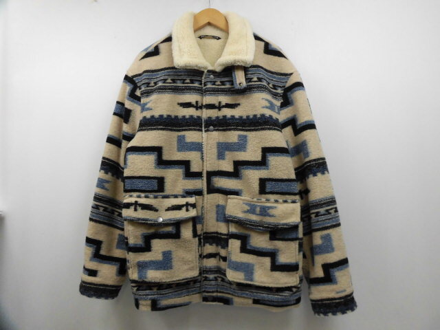 - ZARA ザラ ネイティブ 柄 ボアフリースジャケット 厚手 アウター 裏ボア ベージュ Mサイズ