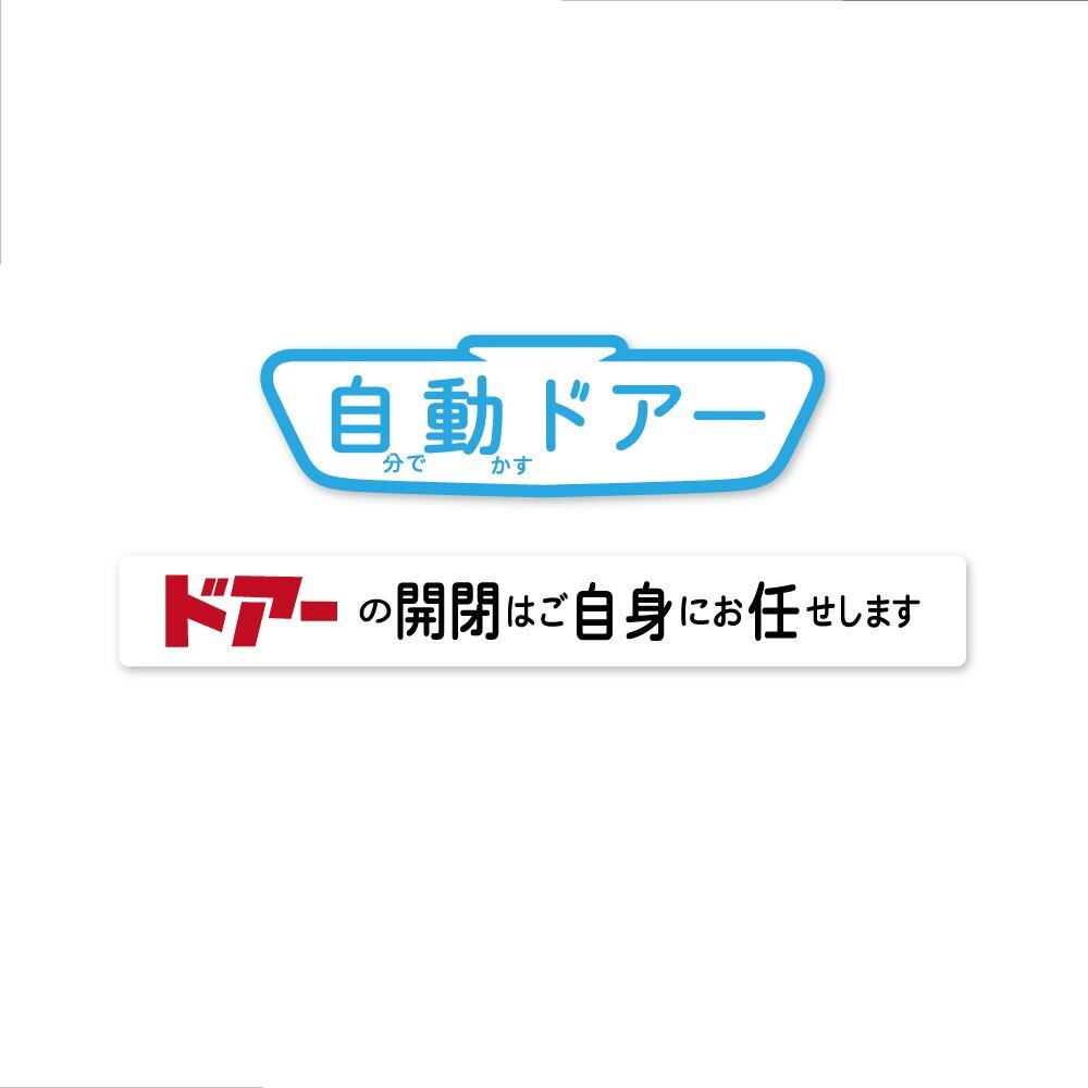 - 昭和レトロ 自分で動かすドア 自分で閉めて下さい 2枚セット ブルー おもしろステッカー 自動ドア 手動ドア シール