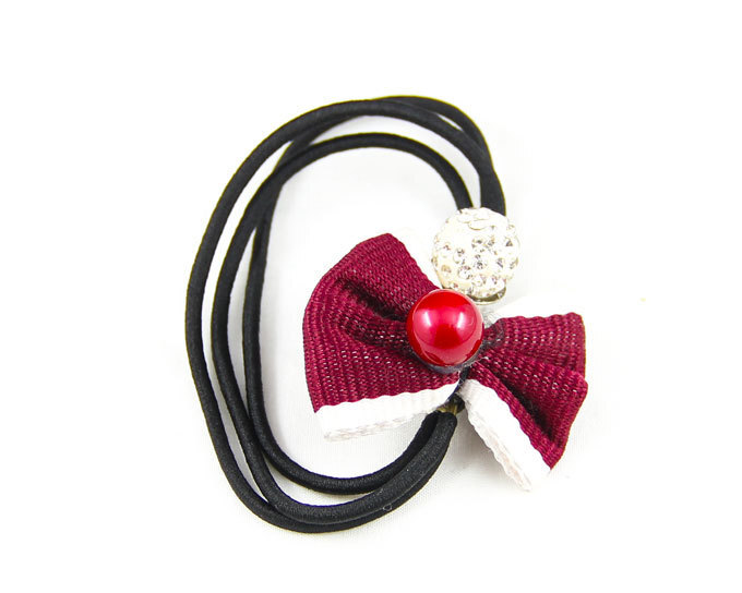 - ヘアゴム 子供 キッズ 限定 100円セール お買い得 ヘアゴム 3重 リボン 赤玉 ラインストーン ワイン ポイント消費 mimosa