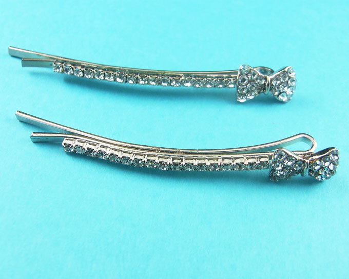 - ヘアピン おしゃれ リボン ヘアアクセリー ゴールド ラインストーン 2本セット ヘアアレンジ mimosa