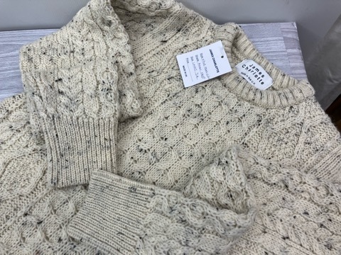 > ★送料割引!フィシャーマンズセーター ケーブルニット Rネック 英国羊毛 バニラ 34/M相当 ladies James Charlotte★SAMPLE未使用格安