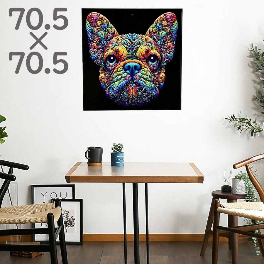 - アートパネル クリスタル 水晶パネル 70×70 壁掛け絵 パネル 犬 動物 絵画 ペット 絵 フレーム付き インテリア おしゃれ ART-010